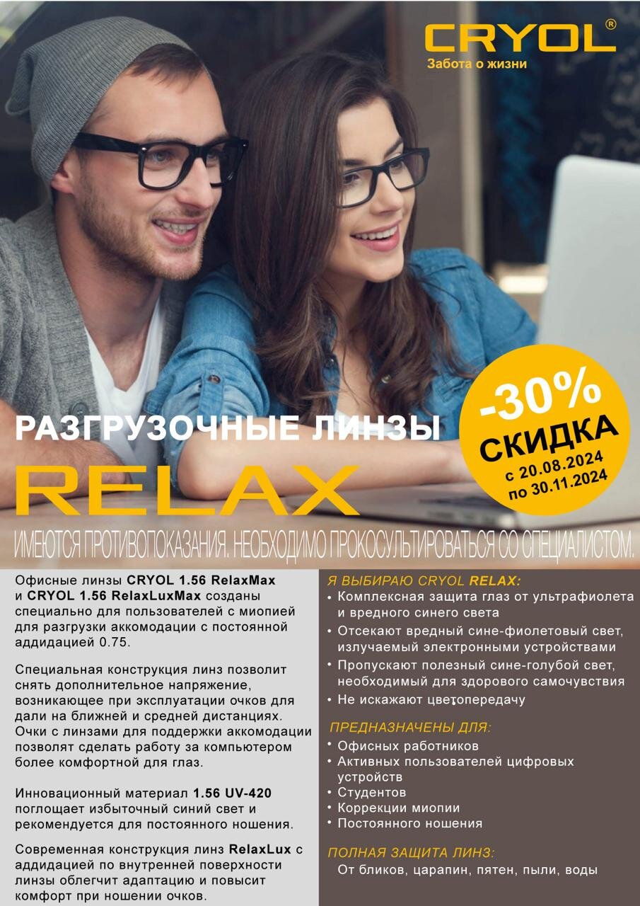 Скидка 30% на разгрузочные линзы relax cryol